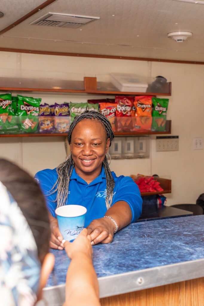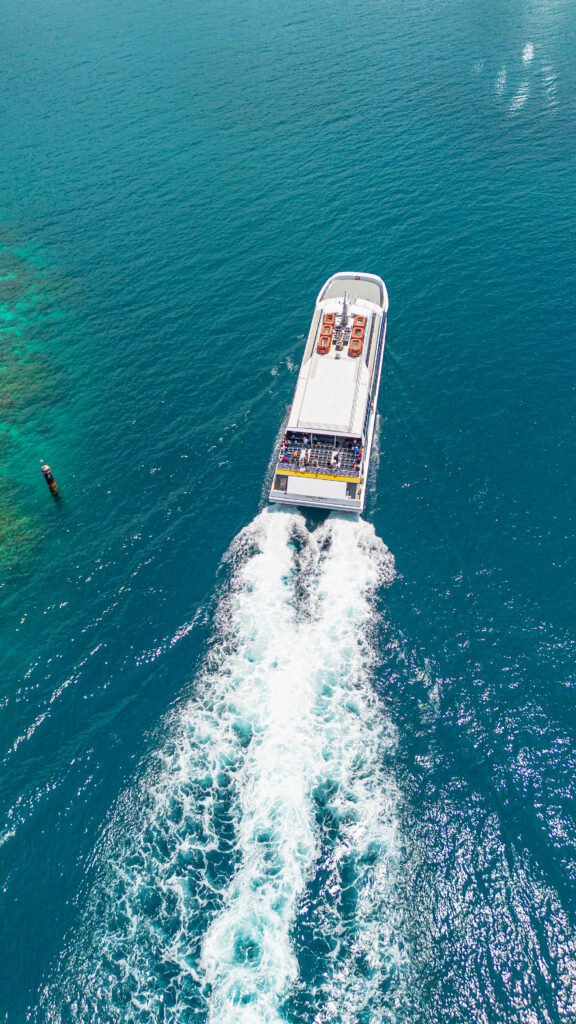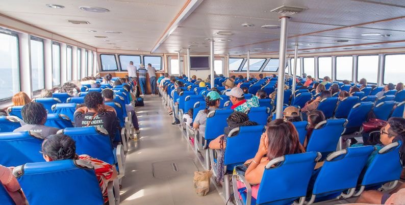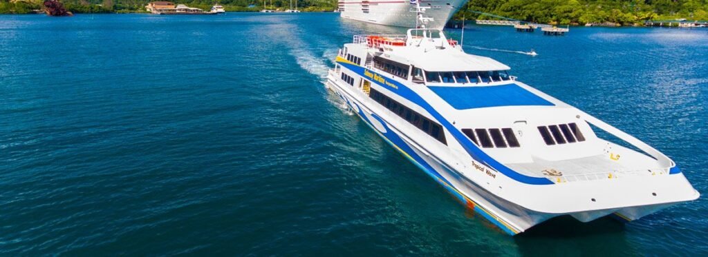 Los catamaranes Galaxy Wave y Tropical Wave pueden transportar a cientos de pasajeros en cómodas cabinas climatizadas o en áreas abiertas para quienes prefieren viajar al aire libre. Durante el trayecto se puede comprar un refrigerio, disfrutar de la vista panorámica y sentir cómo el Caribe se convierte en parte del viaje, no solo en el destino.